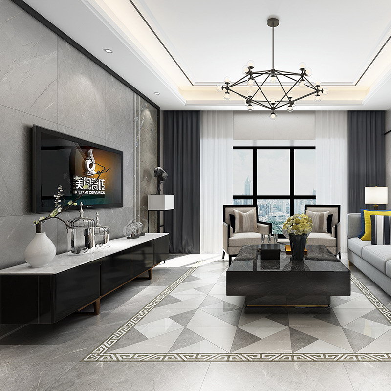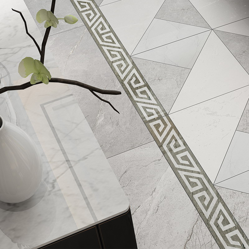 金白交融的磚面上,流轉著輕盈飄逸的花紋,優雅的色調,